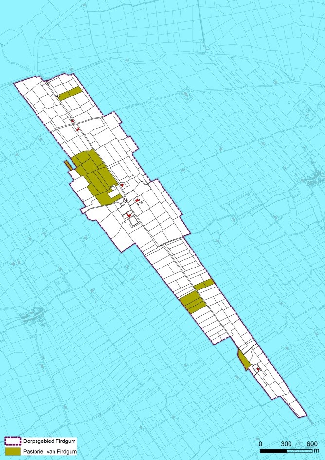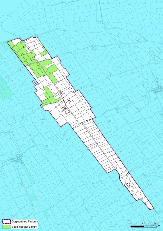 De kloostergoederen en de gronden van de kerk in het dorpsgebied van Firdgum.