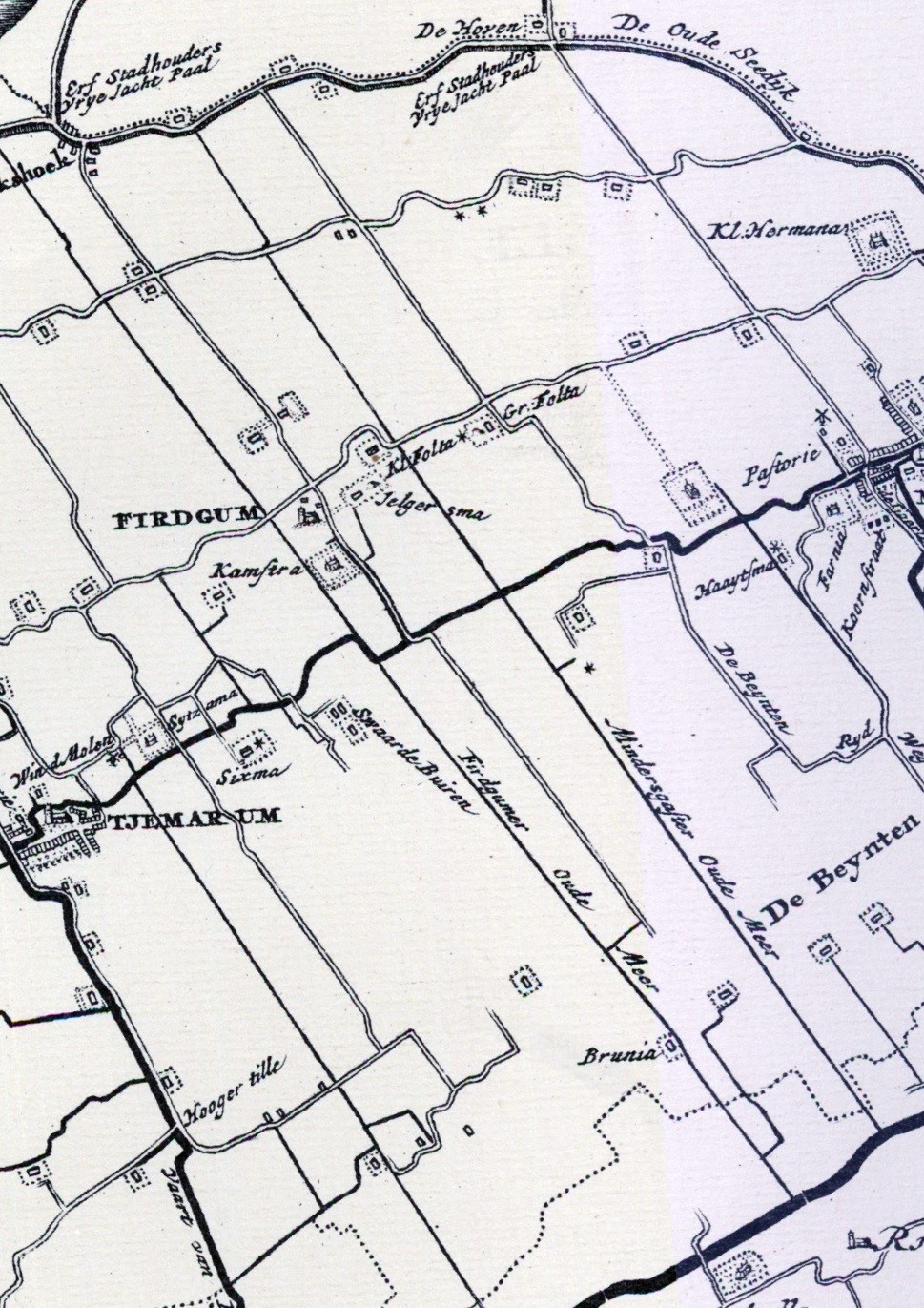 Op een kaart uit de atlas van Eekhoff 1852) worden de bochten in de Hearewei duidelijk afgebeeld. Via de Firdgumer tille kon het Bildtvaartje worden overgestoken. De terp met daarop de boerderij die op deze kaart als Klein Folta wordt aangeduid, wordt op latere kaarten niet meer weergegeven.