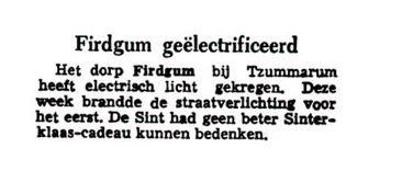 Op 31 mei 1899 werd bij notariële acte de Noord Friesche Locaal Spoorwegmaatschappij opgericht.46 Tweeëneenhalf jaar later, op 1 december 1902 reed de eerste trein vanuit Stiens langs Firdgum richting Tzummarum, om daar feestelijk te worden onthaald. Vanaf deze dag tot aan 15 mei 1932 was Firdgum te bereiken met het zogenaamde ‘lokaaltsje’.47 Het lokaaltsje was geen grote trein, maar ook geen tram. Binnen was de sfeer gemoedelijk als in een winkel met vaste klanten.48 De trein had een stopplaats aan de Firdgumerlaan, daar waar tegenwoordig het huis aan de Camstrawei 6 is te vinden. Restanten van een brug over de Minnertsgaaster Oude Meer herinneren nog aan het spoor dat hier dwars door het dorpsgebied sneed.